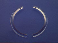 Tam olarak söylemek gerekirse iki adet 150 derecelik halka parçası da denebilir. Halka parçasının genişliği 1.3mm'dir (dış çapı 8.1 mm, iç çapı 6.8mm). Kalınlığı ise düzeltmek istenen miyopiye ağırlığına göre 0.25mm ile 0.35mm arasında 0.05 mm'lik adımlarla farklılık gösterir.